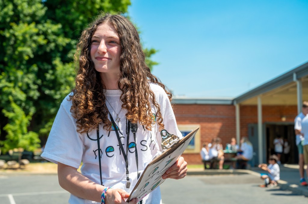 Camp director Gali Schwarz, 16, looks over campers at Camp Nefesh in Sacramento on June 19, 2024. Schwarz has volunteered for the summer camp since 2018.
